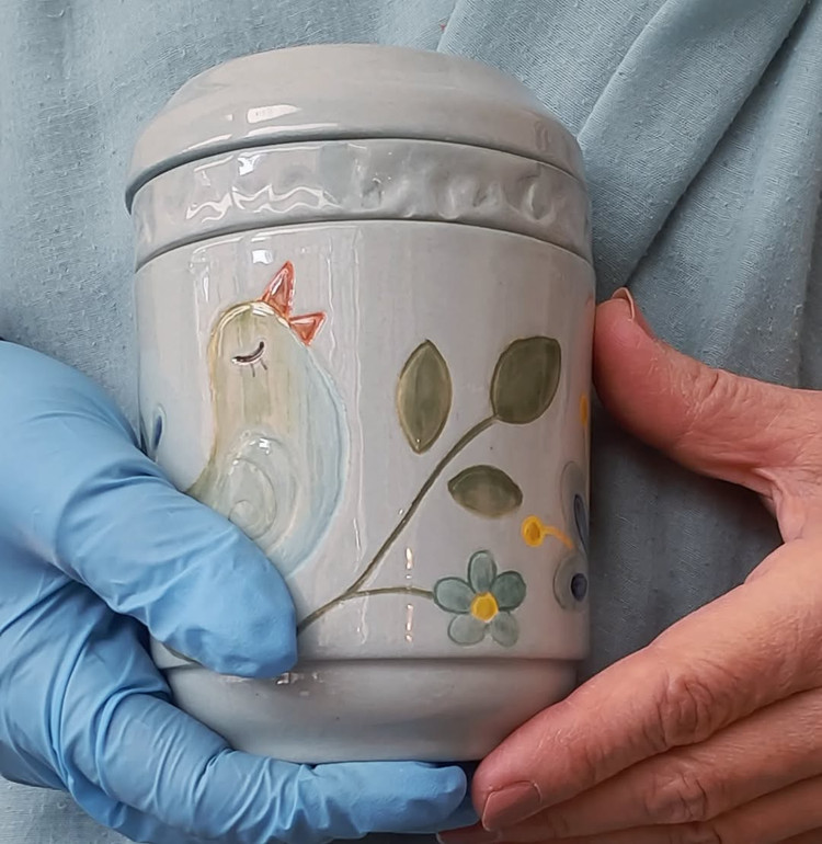 ماگ دمنوشِ خاص میتونه هدیه خوبی واسه یه دوست خاص باشه هرچی از قشنگیش بگم کم گفتم تکنیک#انگوب و سِت کامل این کار به همراه سینی ،لیوان و قندان موجوده اگه دوست دارینش به من پیام بدین تا تصاویر کاملشو براتون بفرستم #ماگ#ماگ_دمنوش#سرامیکی#ظرف_سرامیکی_فنجان#سینی_سرامیکی#ریخته_گری#لعاب#هدیه#کادویی#سفالگری#اسکرافیتو سپرده شد ..